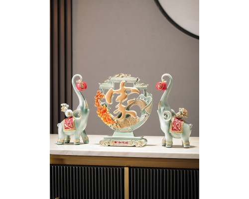 如意葫蘆擺件【淺藍】+財福柿子象一對【淺藍】 (NT2,224)
