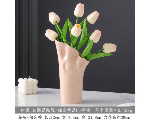 輕奢(白+粉)花瓶+1束粉郁金香 (NT629)