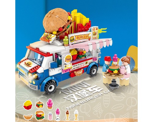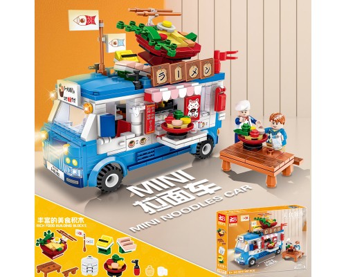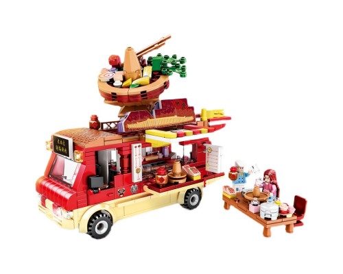 城市小吃美食街移動火鍋餐車拼裝拼裝中國積木汽車玩具