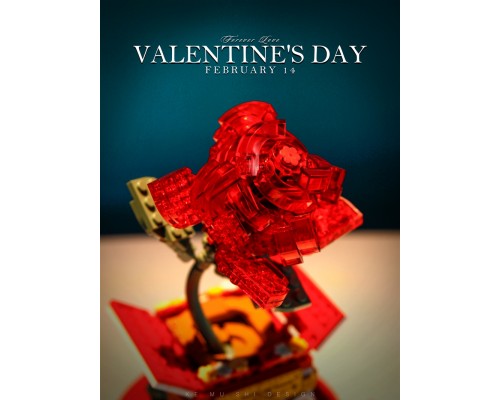 中國積木玫瑰花情人節禮物表白女孩求婚佳奇八音盒拼裝積木玩具