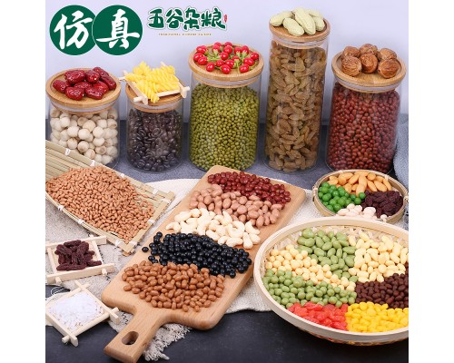 仿真五谷雜糧豆類模型大紅綠豌豆花生紅棗蓮子腰果干果葡萄干道具