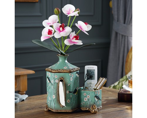 淺綠色 筆筒紙巾盒花插 (NT852)