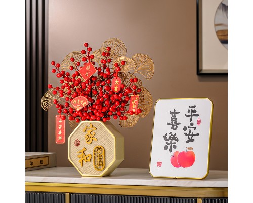 家和萬事興花瓶+相框 (紅果3+金葉2+掛牌) (NT729)