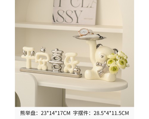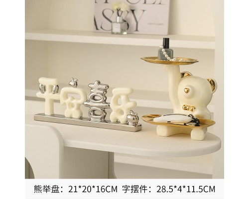 【描金-香檳】愛心熊舉盤+平安喜樂 (NT1,134)