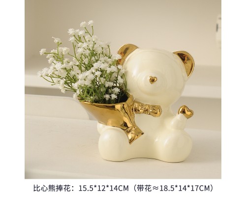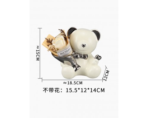 創意捧花暴力熊家居玄關擺件客廳電視柜桌面奶油風裝飾品喬遷禮物