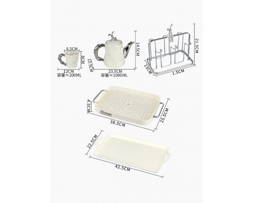 普包【銀把】混色6杯+壺+瀝水托盤+架子 (NT2,361)