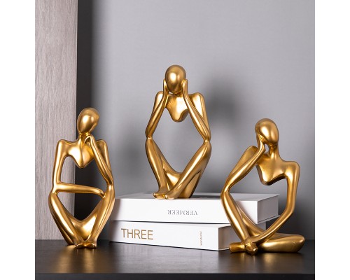 現代輕奢金色人物擺件酒柜裝飾品玄關擺件家居工藝品