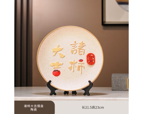 事柿如意裝飾盤+花色福鹿 (NT638)