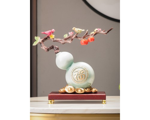 如意葫蘆擺件【淺藍】+財福柿子象一對【淺藍】 (NT2,224)