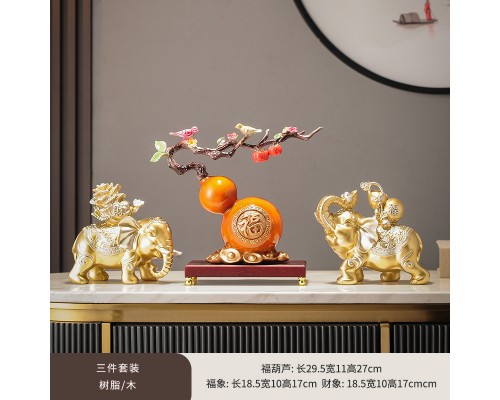 如意葫蘆擺件【橙】+福祿百財象【金】 (NT2,494)